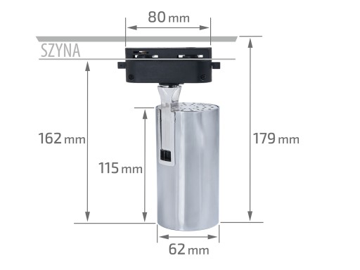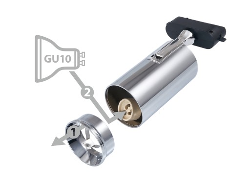- trzech opraw oświetleniowych w kolorze chrom, które można łatwo zamontować na szynie