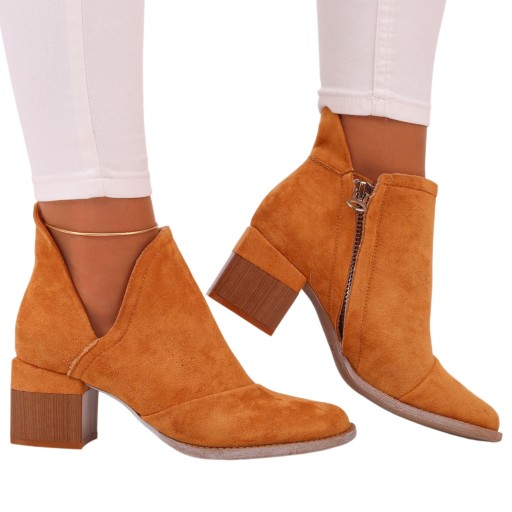Damskie, wsuwane botki na obcasie w kolorze brązowym. Są wygodne w użytkowaniu, lekkie. Posiadają zapięcie na suwak, co umożliwia łatwe zakładanie. ❄ Stabilna, gruba podeszwa dobrze amortyzuje stopę oraz chroni przed zimnem.❄ Wykonane z dobrych jakościowo materiałów. Prosty fason sprawia, że pasują do wielu stylizacji.