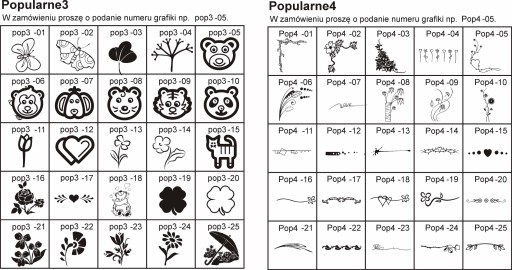 Poniżej rodzaje czcionek do wyboru oraz najbardziej popularne grafiki które również możemy zamieścić na tabliczce.
