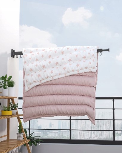- Drążek na ubrania wykonany jest z wysokiej jakości kosmicznego stopu aluminium, który jest lekki, odporny na zarysowania, trwały, odporny na korozję i rdzę oraz ma pogrubione dno.Super ładowność, wystarczająca ilość ubrań, maksymalna ładowność 50kg. (Przypomnienie: Zaleca się suszenie lekkich ubrań na końcu tego stojaka.)