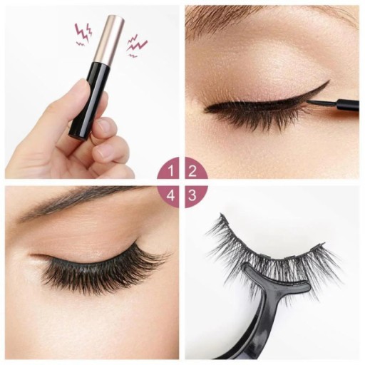 Aplikacja magnetycznych rzęs jest niesamowicie prosta. Malutkie magnesy rozprowadza się na linii rzęs za pomocą eyelinera (Przed nałożeniem należy potrząsnąć eyelinerem, aby małe magnesy równomiernie się rozłożyły.), odczekać ok. 1 min, a następnie przy pomocy pęsety nałożyć magnetyczne rzęsy na wierzchu rzęs naturalnych. Jak widzisz, taka aplikacja jest znacznie prostsza od metody z wykorzystaniem kleju.