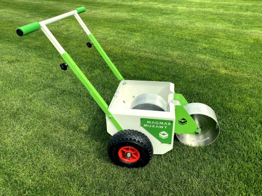 Wózek do malowania linii MAGMAR MAGLINER. Dzięki urządzeniu w szybki i prosty sposób wykonasz perfekcyjne, równe linie na boisku. MAGLINER wyposażony jest w rolkę, wałek, które w prosty sposób równomiernie nakłada farbę na murawę wykonując przy tym linie o stałej szerokości 12cm. Mocna, solidna rama i pompowane koła pozwalają pewnie prowadzić wózek po trawie. Zbiornik pozwala na wymalowanie pełnowymiarowego boiska do piłki nożnej. Posiada uchwyty do malowania okręgów przystosowane dla użytkowników prawo i lewo ręcznych. Jest wygodny w czyszczeniu. Po zakończonej pracy należy go umyć ciepłą wodą. Projekt wózka wykonaliśmy samodzielnie. Jesteśmy praktykami. Pracujemy, wykorzystując produkty, które sami stworzyliśmy!