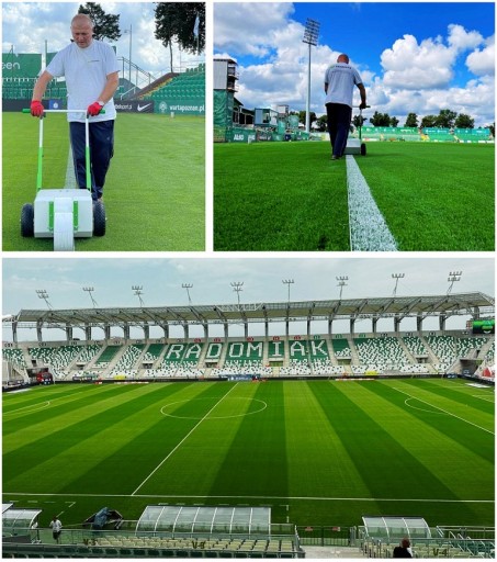 Do wyznaczania linii pola do gry na boisku piłkarskim potrzebny jest nie tylko specjalny wózek - znacznik linii ale i odpowiednia farba. Idealnie zda egzamin farba rozpuszczalna w wodzie, ekologiczny koncentrat dostępna w sklepie MAGMAR-MURAWY Dzięki niej wyznaczysz idealne białe linii na murawie boiska.