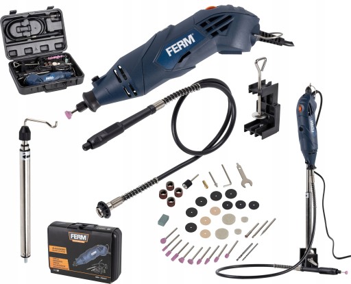 W komplecie z urządzeniem otrzymujemy również solidną i praktyczną walizkę transportową na urządzenie i 40 różnego rodzaju akcesoriów (w tym małe szczotki polerskie, papiery ścierne, kamienie szlifierskie itp.). Kabel o długości 3 m pozwala na dużą swoboę ruchu podczas pracy. Z tym urządzeniem drobne prace domowe czy modelarskie już zawsze będą proste i przyjemne.