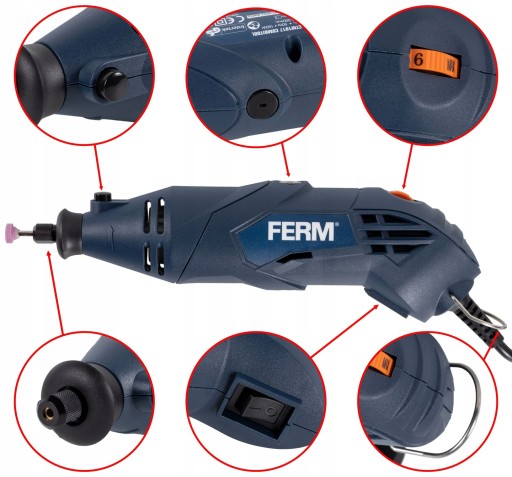 Multiszlifierka CTM1017 Ferm to wielofunkcyjne narzędzie przeznaczone do szlifowania, frezowania, cięcia, wiercenia, grawerowania czy polerowania. Urządzenie zostało wyposażone w bardzo praktyczny statyw mocowany do blatu (z możliwością regulacji) oraz złącze elastyczne przenoszące napęd bezpośrednio z urządzenia na końcówkę akcesoria dzięki czemu praca tym narzędziem jest bardzo precyzyjna i wygodna. Sprawdza się zarówno w warsztacie jak i podczas prac hobbystycznych.