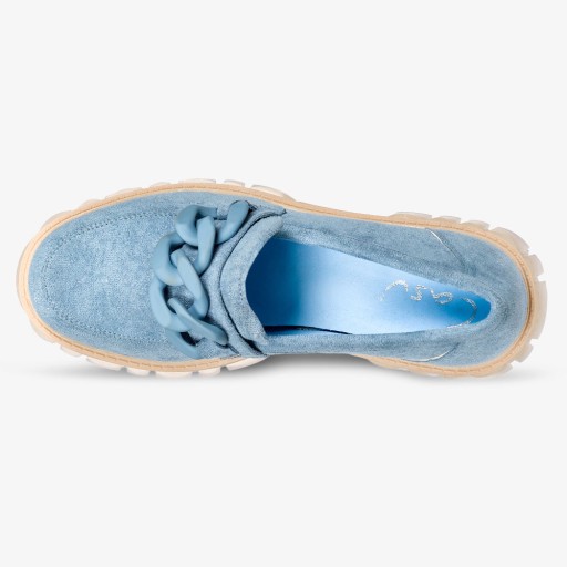 Niebieskie mokasyny damskie model G23X4-BL zostały wykonane z wysokogatunkowego zamszu ekologicznego co gwarantuje doskonałą jakość, wygodę i dopasowanie do stopy. To wyjątkowy przykład elegancji i stylu w świecie obuwia. Każdy szczegół tych mokasynów odzwierciedla staranność w projektowaniu oraz wysoką jakość wykonania. Ich głównym atutem jest miękki i aksamitny materiał w odcieniu niebieskiego, który przyciąga wzrok i nadaje butom wyjątkowego charakteru. Delikatne, ręcznie wykończone szwy dodają im uroku, podkreślając staranność w produkcji. Niezwykłą ozdobą tych mokasynów jest subtelny łańcuch w kolorze dopasowanym do obuwia. Dodaje butom nutki nowoczesności i awangardowego stylu, jednocześnie zachowując klasyczną estetykę. Dopracowany krój cholewki zapewnia doskonałe dopasowanie, co sprawia, że buty świetnie prezentują się zarówno z eleganckimi spodniami, jak i sukienkami czy spódnicami. Podwyższona podeszwa z widocznymi rowkami to odpowiedź na najnowsze trendy modowe. W sklepie znajdziesz wiele wariantów tego modelu. To idealny wybór dla osób ceniących sobie wyrafinowany styl oraz wysoką jakość wykonania. Bez wątpienia są one doskonałym dodatkiem do garderoby, który doda każdemu zestawowi niepowtarzalnego uroku i elegancji.