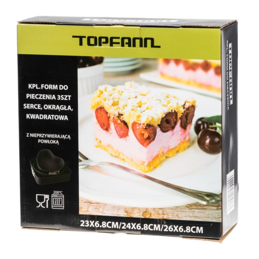 ZESTAW 3 TORTOWNIC DO PIECZENIA CIAST TORTÓW -KWADRAT/SERCE/KOŁO CO POZWOLI UZYSKAĆ NAM ZRÓŻNICOWANE WYPIEKI.