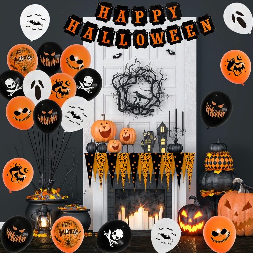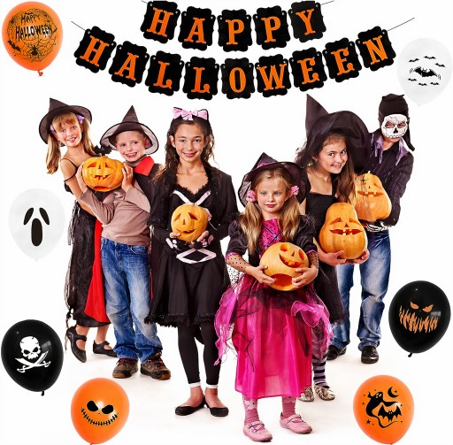 DUŻY ZESTAW DEKORACJI NA HALLOWEEN GIRLANDA KURTYNA BALONY