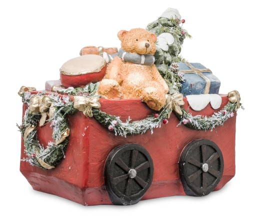 Przepiękna duża dekoracja świąteczna, przedstawia wagon z prezentami. Figurka została wykonana z tworzywa sztucznego, w kolorowej aranżacji. Dodatkowym atutem jest podświetlenie LED zasilane na baterię. Dekoracja jest to także znakomity prezent dla bliskich.
