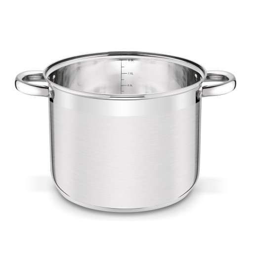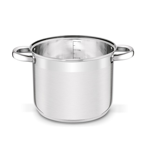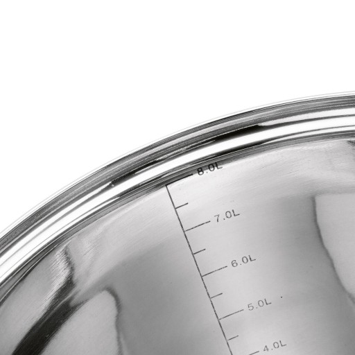 Pozostałe informacje: - garnki ze stali nierdzewnej, - wykończenie zewnętrzne satyna z paskiem w połysku , -wykończenie wewnętrzne: połysk, -skala litrażu, -pokrywy szklana ze stalowym rantem i odpowietrznikiem, -uchwyty garnka nitowane, -uchwyt pokrywy stalowy, przykręcany