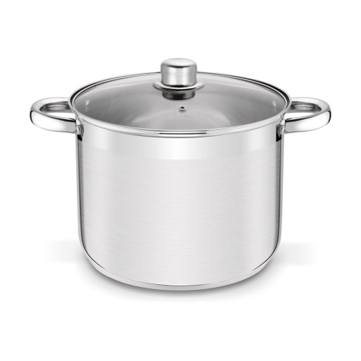 Garnki proste z pokrywką Tadar 6,5 / 8 / 10 l wykonane są z trwałej stali nierdzewnej. Są duże, pojemne oraz wykorzystują warstwowe dno. W ten sposób masz pewność, że energooszczędnie i równomiernie podgrzejesz jedzenie. Oznacza to również, że skutecznie wykorzystasz komplet na każdym rodzaju kuchenki, w tym na gazie i indukcji. Możesz w pełni skorzystać z ich pojemności. Zestaw oferuje pewny chwyt, dlatego bezpiecznie przeniesiesz nawet pełne garnki. Służą do tego solidne, duże, nitowane uchwyty, które wolniej absorbują ciepło. Wykorzystując garnki gastronomiczne Tadar 6 elementów i robiąc w nich np. zupę, wygodnie i dokładnie odmierzysz ilość wody. To dlatego, że wewnątrz każdego znajdziesz skalę litrażu. Co więcej, zyskasz naczynia, w których można długo dusić potrawy na wolnym ogniu. Od tego są właśnie dedykowane pokrywki szklane z odpowietrznikiem, których rant zabezpieczono stalą przed wyszczerbieniem. Prosty kształt garnków to łatwiejsza i szybsza pielęgnacja!