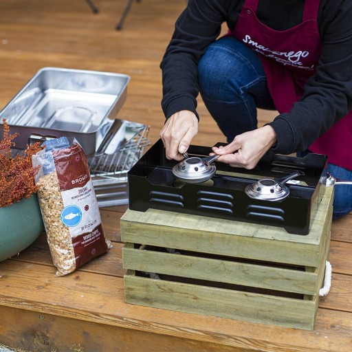Solidna i przemyślana konstrukcja sprawia, że produkt jest niezwykle wytrzymały i łatwo można utrzymać go w czystości. Dwa palniki zasilane paliwem żelowym pozwalają na wędzenie bez dostępu do gazu czy prądu. Wędzenie polega na podgrzewaniu od spodu zrębków wędzarniczych umieszczanych na dnie wędzarni, w efekcie czego wytwarza się dym. Nadmiar tłuszczu powstającego podczas wędzenia ocieka na specjalną tackę tłuszczową, dzięki czemu nie spala się on, a cała wędzarnia niemal nie generuje dymu. Jednocześnie tacka gwarantuje brak kontaktu paliwa z wędzoną żywnością. Specjalne palniki, w których umieszcza się bezwonne i bezzapachowe paliwo żelowe, posiadają regulację płomienia umożliwiającą zwiększenie lub zmniejszenie temperatury w komorze wędzarniczej. Termometr dołączony do wędzarni pozwala zaś na kontrolę tej temperatury. To dzięki niemu dowiesz się, czy wędzenie przebiega w optymalnych warunkach, a Twoje ulubione dania będą aromatyczne i pyszne!