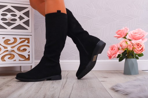 Eleganckie, zamszowe, ażurowe kozaki damskie w kolorze czarnym. Są miękkie i wygodne. Stabilna podeszwa zapewnia komfort użytkowania. Klasyczny fason będzie uzupełnieniem nie jednej stylizacji!