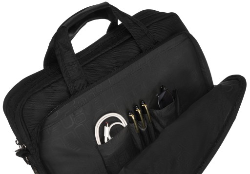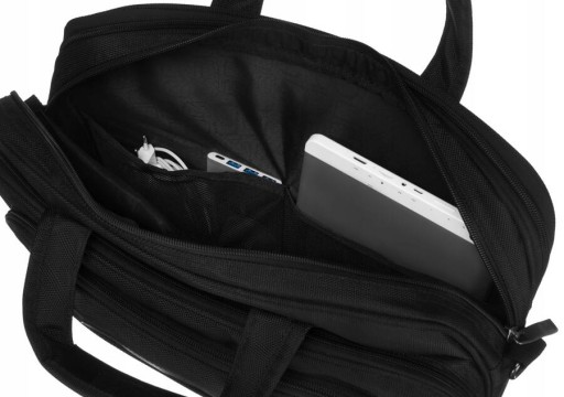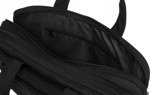 Torba posiada trzy komory zamykane zamkami błyskawicznymi. Środek w całości na podszewce. W jednej z komór znajduje się duża przegroda na urządzenie przenośne z matrycą do 15 cali. Urządzenie zabezpieczysz przed wysunięciem paskiem na rzep.