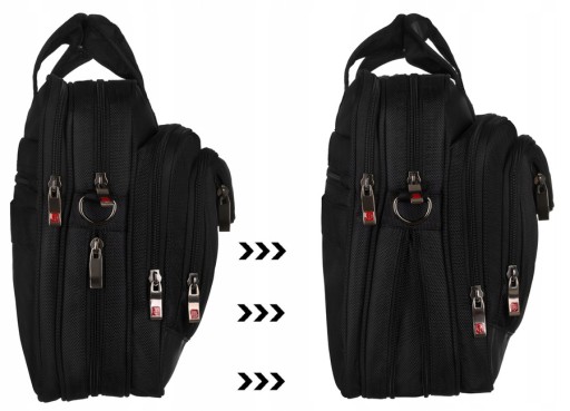 Model ten został wyposażony w dodatkowy suwak, który umożliwia poszerzenie torby, dzięki czemu wzrasta jej pakowność i pojemność.