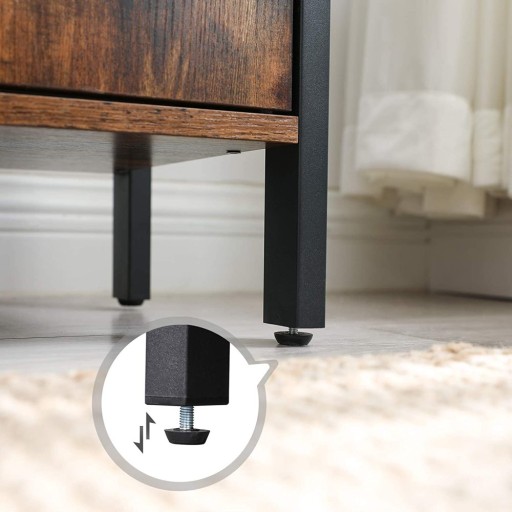 Regał z szafką w stylu rustykalnym z kolekcji Vasagle doskonale uzupełni wnętrza w stylu industrialnym, loftowym, vintage i minimalistycznym. Półki posiadają nieregularnie rozmieszone przegrody co zapewnia niepowtarzalny design. Mebel nie tylko zachwyca pięknym wyglądem, ale również jest niezwykle funkcjonalny, co zapewniają 4 półki oraz zamykana szafka. Witryna może posłużyć do przechowywania rzeczy, które chcemy mieć pod ręką, jak również do wyeksponowania pamiątek i dekoracji. Regał wykonany jest z metalowej, czarnej, matowej ramy oraz półek MDF w kolorze rustykalnego brązu. Dzięki swej uniwersalności idealnie wpasuje się do salonu, sypialni, przedpokoju, gabinetu, biura, czy kuchni. Regulowane nóżki zapewnią stabilność mebla i bezpieczeństwo użytkowania.