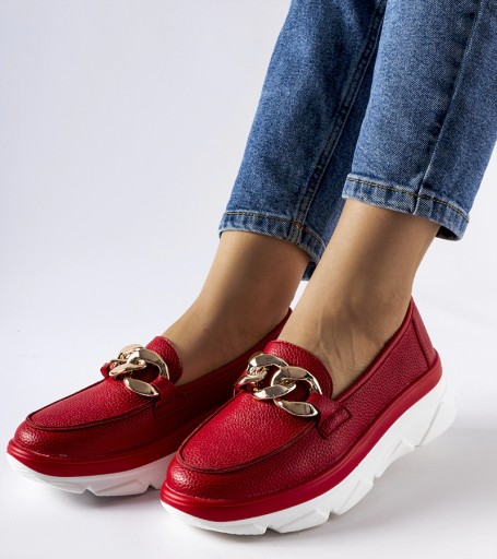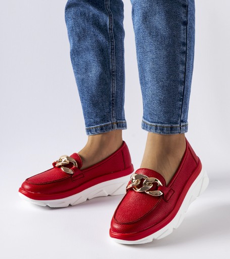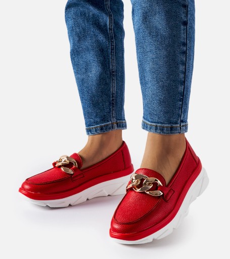 Czerwone mokasyny z łańcuchem Vinceza