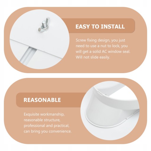 Unikalne zastosowanie śrub ustalających jako metody mocowania. Po prostu zablokuj nakrętką, aby uzyskać solidne uszczelnienie okna AC. Niełatwo się ślizgać.