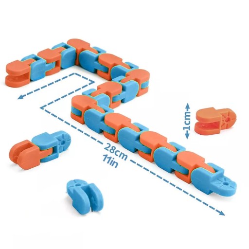 Kwadratowy łańcuch który można wywijać, tworzyć kształty, bransoletki różne figury i wzory. Łańcuch można łączyć w nieskończoność dzięki możliwości przedłużenia.