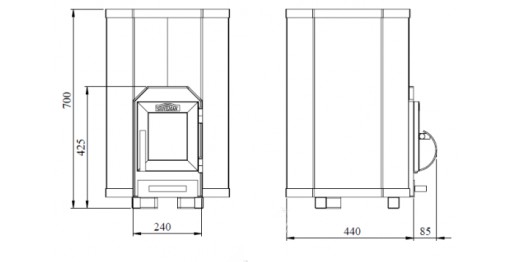 - odległość od przodu (od drzwi paleniska) - 900 mm