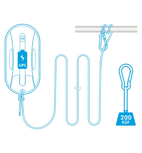 Robot wyposażony jest również w 4 metrową linkę, która zabezpiecza urządzenie podczas pracy na dużych wysokościach. Zapobiega to częstym obawom o spadek urządzenia. Dzięki specjalnemu systemowi kontroli i automatycznemu wykrywaniu przeszkód czyszczenie powierzchni jest całkowicie bezpieczne i praktycznie niewymagające ingerencji człowieka.