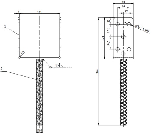 Podstawa słupa - kotwa do betonu typu U - PS - cynk ogniowy