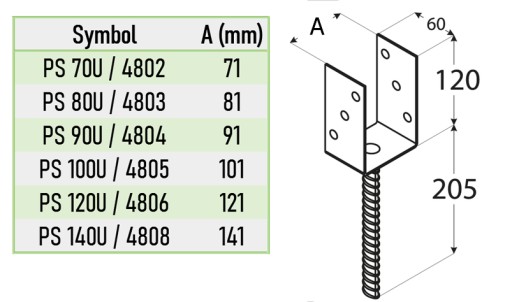 Podstawa słupa typu "U" pozwala na montaż elementów drewnianych z betonem. Zapewnia odpowiednią dylatację drewna od podłoża.