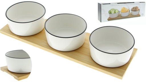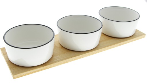 НАБОР ИЗ 3 ФАРФОРОВЫХ КОНТЕЙНЕРОВ НА БАМБУКОВОЙ ДОСТЕ