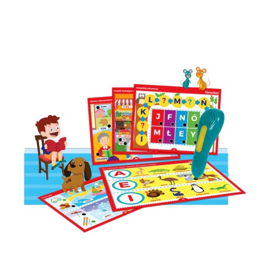 Gra Mówiące pióro 500 Pytań Litery i SłowaEdukacyjna gra polegająca na pytaniach i odpowiedziach opracowana specjalnie z myślą o dzieciach w wieku przedszkolnym.Mówiące pióro towarzyszy dziecku podczas zabawy za pomocą efektów świetlnych i zabawnych komunikatów dźwiękowych. Edukacyjny projekt leżący u podstaw tej gry został opracowany po to, by wzbudzać u najmłodszych ciekawość otaczającego świata i przyjemność odkrywania jego tajników. 60 zaproponowanych zadań dotyczy różnych dziedzin życia i rozwija w zabawny sposób umiejętności logiczne, mnemotechniczne, językowe oraz zmysł obserwacji.