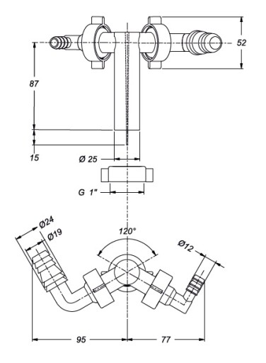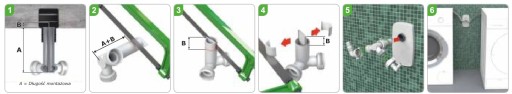 Uniwersalne podwójne przyłącze do odprowadzania wody z urządzeń AGD. Wyposażone w 3 wymienne przyłącza: 2 przyłącza do pralki/zmywarki i 1 przyłącze do suszarki do ubrań. Przyłącze zakończone odpływem ø25 wyposażonym w nakretkę 3/4" z uszczelką. Brak zasyfonowania. Zaleca się montaż do syfonu podtynkowego.
