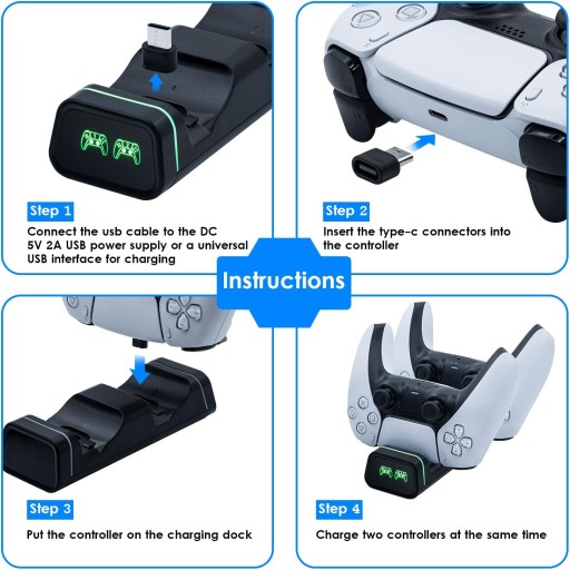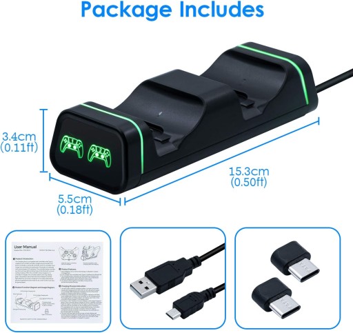 Ta stacja ładująca kontrolera jest idealnie kompatybilna z grami wideo: do PS5 Dualsense, Xbox Series S i Xbox Series X, kontrolera Xbox Elite 2, kontrolera Nintendo Switch Pro, Google Controller i innych kontrolerów z interfejsem USB typu C. Umożliwia wygodne przechowywanie i ładowanie 2 kontrolerów z 1 stacją dokującą! Akumulator kontrolera Xbox nie wchodzi w zakres dostawy.
