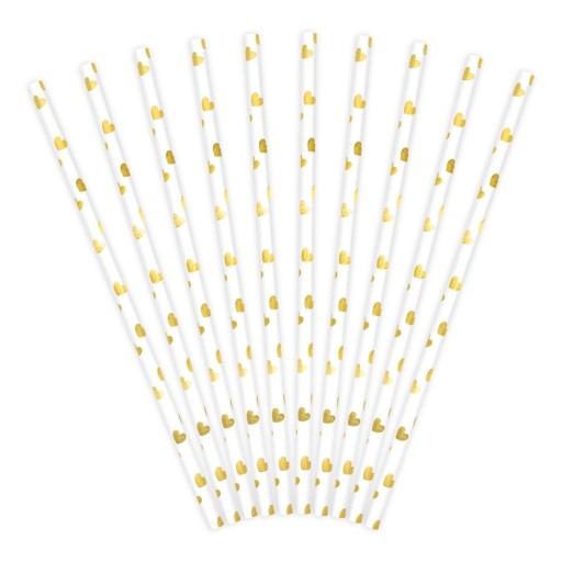 SŁOMKI PAPIEROWE RURKI DO NAPOJÓW ZŁOTE SERCA 10 SZTUK