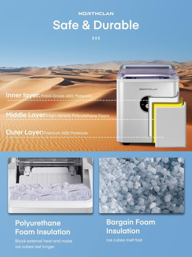 Kostkarka do lodu Northclan może być umieszczona w dowolnym miejscu w kuchni z wolną przestrzenią na blacie dzięki niewielkim rozmiarom 29 x 22 x 30 cm. Kemping, tylna klapa, pływanie łódką, samochód kempingowy, biuro, salon, o ile jest źródło zasilania i woda.