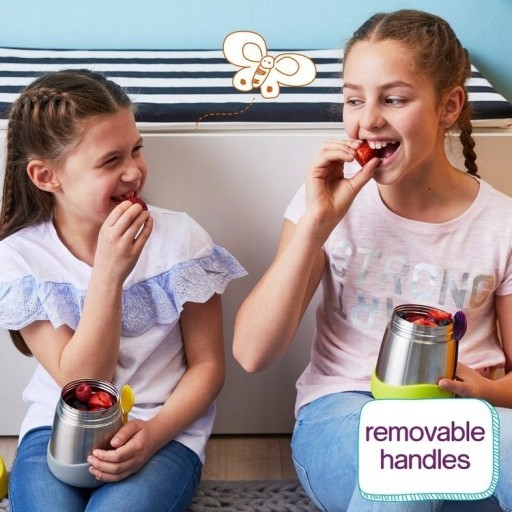 Otwór w termosie jest dość szeroki, umożliwia łatwe nakładanie, jedzenie, a także czyszczenie. Silikonowa nakładka na spodzie jest zdejmowana, dodatkowo zabezpiecza pojemnik i jest antypoślizgowa. Silikonowy widelczyk wsuwa się w otwór przy podstawie. Termos spożywczy możesz zabrać na wycieczkę, w dłuższą podróż, w miejsce gdzie chcesz podać dziecku własny, zdrowy posiłek w odpowiedniej temperaturze.