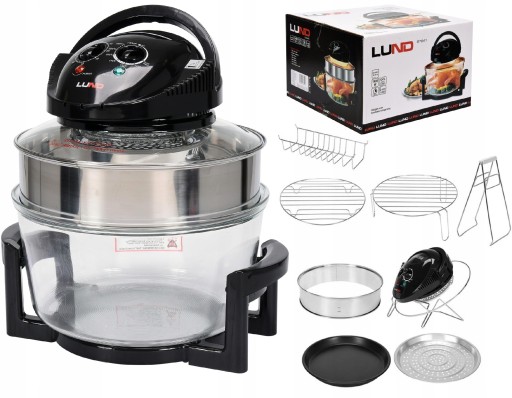Kompaktowe urządzenie wielofunkcyjne, które piecze, grilluje, opieka, gotuje, gotuje na parze, odmraża i podgrzewa. Dzięki zastosowaniu halogenów piecze o kilka razy szybciej w porównaniu do tradycyjnego piekarnika.
