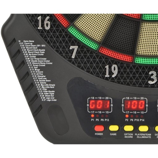 Z DARTEM ELEKTRONICZNYM Z ZASILACZEM I 4 LICZNIKAMI ENERO rozegrasz turnieje nawet przez 16 osób jednocześnie, a 27 gier w tym 243 wariantów pozwoli na wybór idealnej opcji rozrywki.