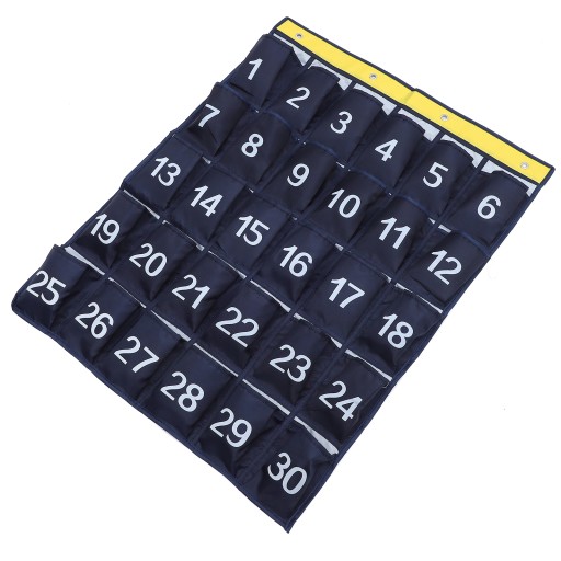 Wystarczająco duże i wystarczające kieszenie, aby uporządkować telefony komórkowe i kalkulatory uczniów w klasie.