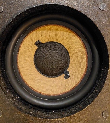 Głośniki na gumowych zawieszeniach, zawieszenia w dobrym stanie.