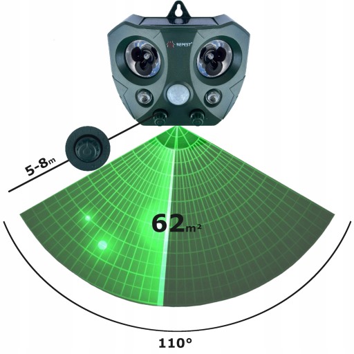 Technologia ultra soniczna skutecznie odstrasza niepożądanych gości. Częstotliwość wytwarzana przez urządzenie jest bardzo nieprzyjemna dla zwierząt takich jak psy, koty, ptaki, lisy, dziki, jelenie, zające, wiewiórki co skutecznie skłania je do omijania wyznaczonego terenu. Wykrycie zwierząt i działanie urządzenia sygnalizuje wbudowana dioda LED.
