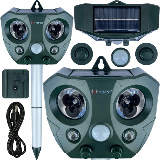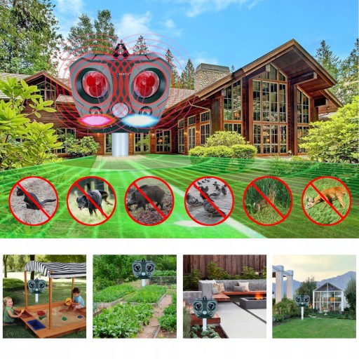 Odstraszacz zwierząt, psów, kotów, ptaków, lisów, dzików, kun, zająców, wiewiórek i innych 7w1