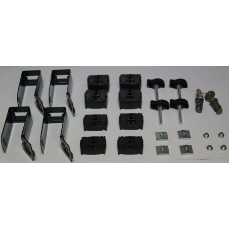 Zestaw elementów mocujących umożliwia łatwy montaż bez użycia dodatkowych narzędzi, zarówno na stalowych belkach o przekroju prostokątnym jak i na opływowych belkach aluminiowych. Komplet podkładek dystansowych pozwala na usytuowanie uchwytów na jednym z czterech dostępnych poziomów, odpowiednio dobranym aby zapobiec uszkodzeniu dachu samochodu wiązaniami nart. Odpowiednio ukształtowane korpusy z kompozytowego tworzywa, sztywne profile aluminiowe i wysokiej jakości elastyczne dociskowe profile gumowe, zapewniają pewne mocowanie nart i desek o zróżnicowanej grubości oraz łatwą obsługę bez konieczności zdejmowania rękawic narciarskich. Zamki z typowymi wkładkami, z kluczykami występującymi w dwustu odmianach, zabezpieczają przed kradzieżą zarówno narty jak i sam bagażnik.