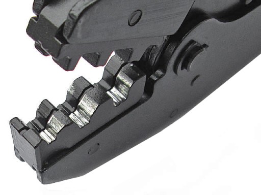 Szczęki narzędzia posiadają trzy gniazda zaciskowe zaprojektowane do zaciskania konektorów na żyłach o przekrojach 0.5-1.0, 1.5-2.5 oraz 4.0-6.0mm²
