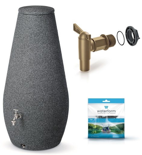 Zbiornik to designerski i funkcjonalny zasobnik na wodę deszczową, którego kształt inspirowany jest kroplą wody. Powierzchnia przypominająca strukturę tynku i neutralna kolorystyka sprawiają, że idealnie prezentuje się w nowoczesnych aranżacjach ogrodowych.