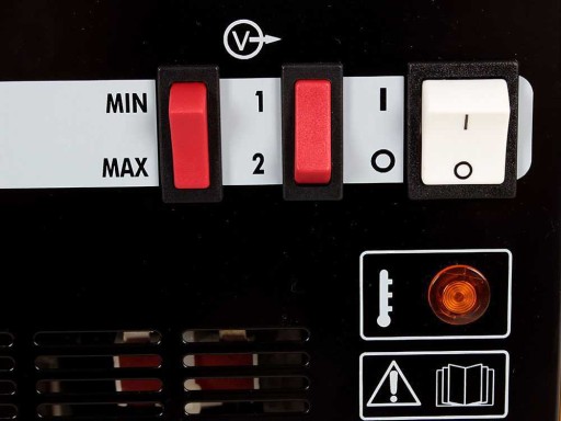 Przycisk zapłonu, przycisk regulacji spawania i lampka zabezpieczenia termicznego