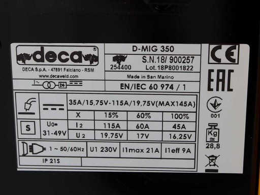 Spawarka drutem rdzeniowym Deca D-MIG 350 jest urządzeniem półprofesjonalnym , posiadającym system spawania MIG/MAG i NO GAS . Model ten zastępuje Startwin 180 E i Decastar 150E. To nowy model, mocny, niezawodny, o absolutnie bezkonkurencyjnym stosunku jakości do ceny.