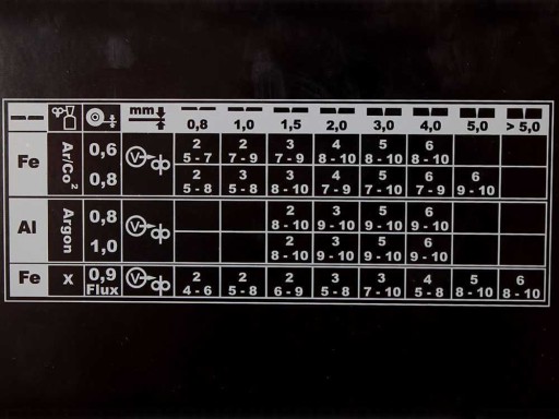 - Stosowany drut: drut proszkowy Ø 0,9 mm - stal Ø 0,6-0,8 mm - stal nierdzewna Ø 0,8 mm - Al.Mg-Al.Si Ø 0,8-1,0 mm