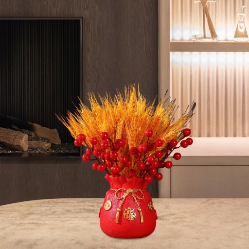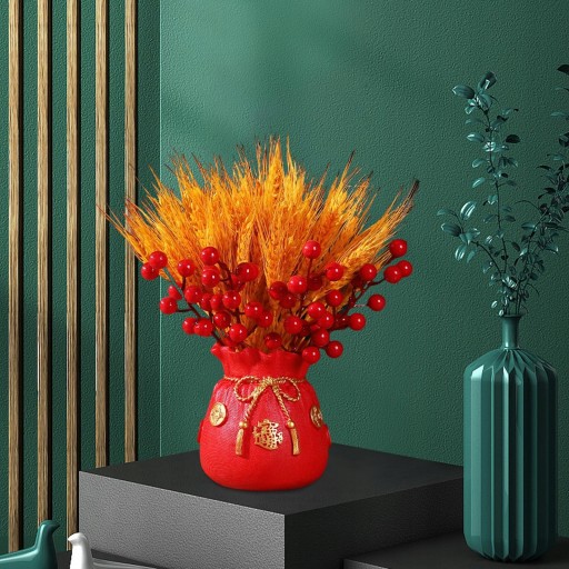 Materiał: rzeźby bonsai i jelenia w kształcie błogosławionej torby wykonane są z wysokiej jakości żywicy, ze 100 łodygami suszonych kłosów pszenicy i 4 czerwonymi jagodami. dobre wykonanie i trwałe.