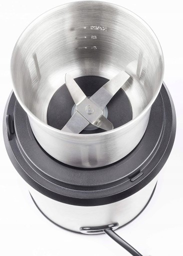 PARAMETRY TECHNICZNE: ✅2w1 młynek do kawy i rozdrabniacz ✅Obudowa ze stali szlachetnej ✅2 duże pojemniki do mielenia ze stali szlachetnej ✅Pojemność 75 g kawy ✅Nóż do mielenia kawy z 2 ostrzami ze stali szlachetnej, nóż do rozdrabniania np. ziół i orzechów z 4 ostrzami ze stali szlachetnej. ✅Silnik o dużej mocy 200 W ✅Wyłącznik bezpieczeństwa – uruchomienie możliwe tylko przy założonej pokrywce ✅Wyłącznik bezpieczeństwa również przy pracy impulsowej ✅Stopień rozdrobnienia wybierany czasem pracy ✅Schowek na przewód ✅220-240 V, 50/60 Hz, 200 watów