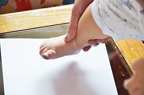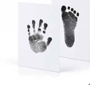 W ramce znajdują się 2 miejsca na odcisk dłoni oraz na odcisk stópki oraz gąbeczka na tusz, która umożliwi zrobienie odcisku.
