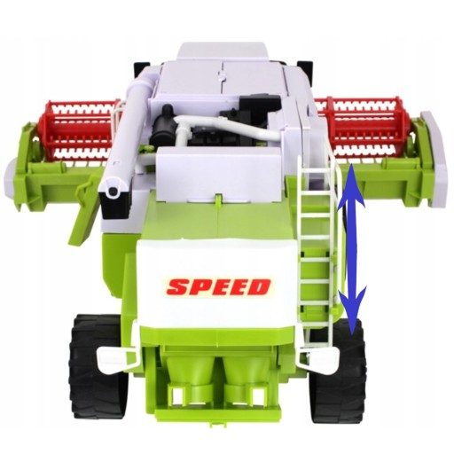 ✔️ Heder umieszczony w kombajnie obraca się oraz podnosi, by ustawić długość na jaką chcemy kosić zboże. Można go również zdjąć całkowicie i umieścić na wózku w czasie transportu aby zmniejszyć zagrożenie podczas przejazdu ruchliwą drogą.